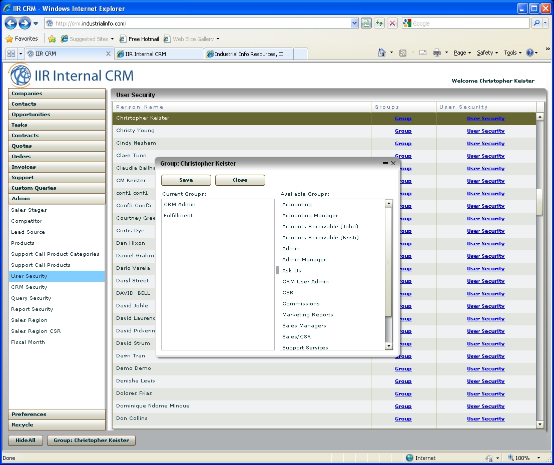InternalCRM: Admin